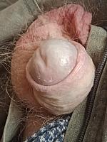 My dick, hard with foreskin pulled back