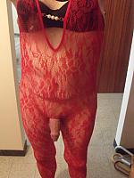 Showing cock in her dirty crotchless panties