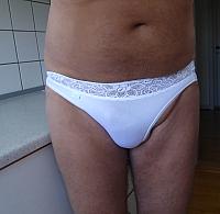 My cock in white sexy panties and wants to cum out !