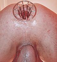 Pierced cock, cock cage and ball stretchers