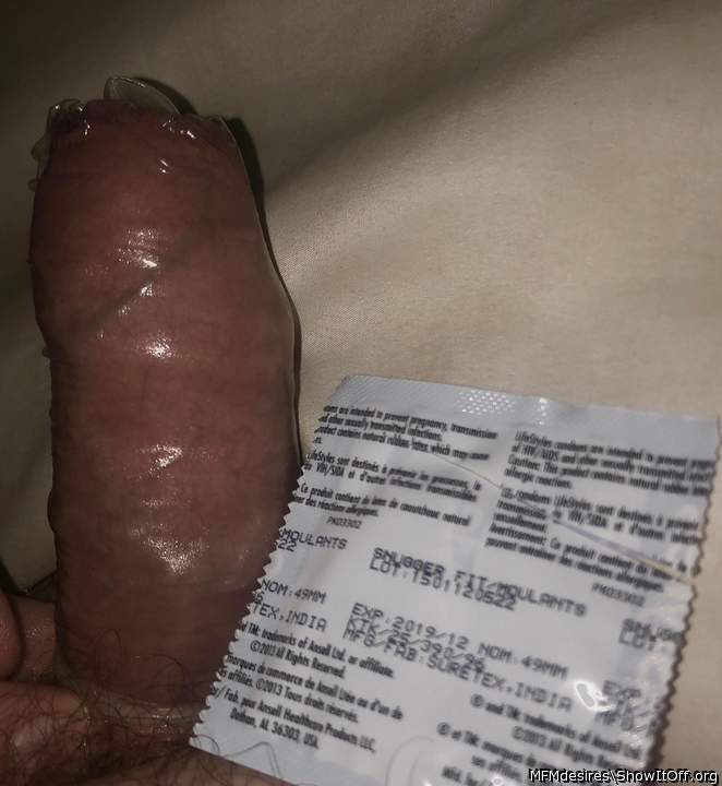 condom stretched over my rooter girth