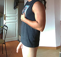 Cock hanging below my t shirt