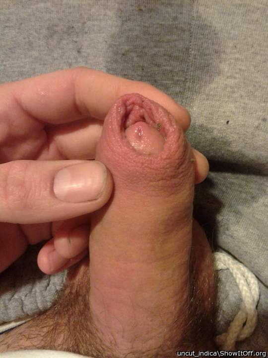 My hard wet uncut cock and pubes