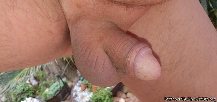 Horny In The Garden So My Shiny Bell End Comes Out