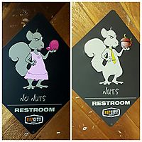 The signs at a Bar indicating the men's and women's rest rooms.