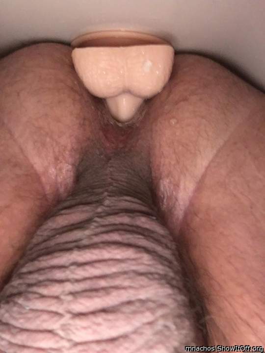 a bit of an up view with a hard cock n but plug