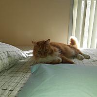 Tiger resting in Grandma's bed