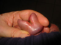 After snipping fren from glans to clear PA hole