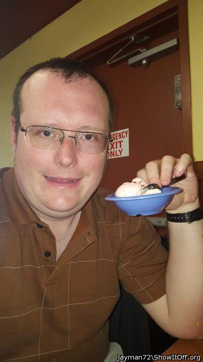 Thanksgiving Day bowl of strawberry ice cream at Golden Corral.