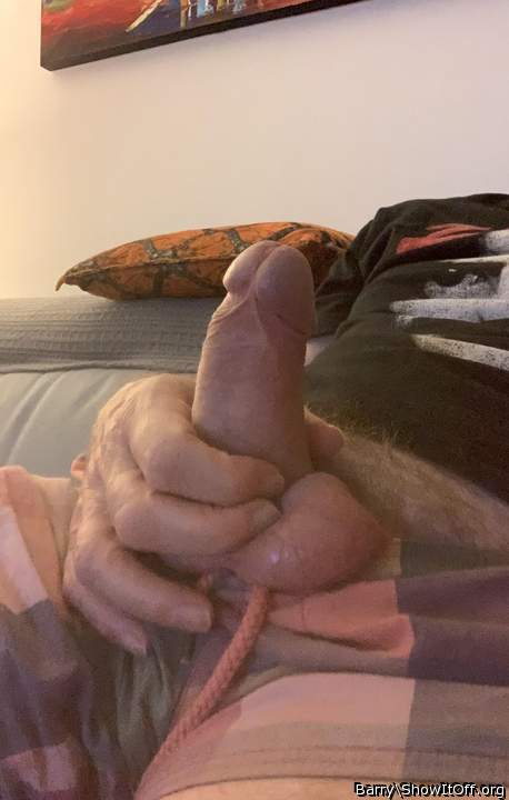 Cock in hand.