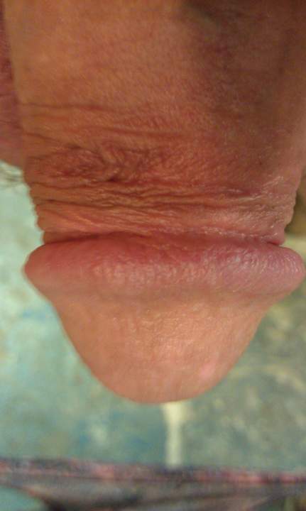 Glans sideview with corona, frenulum and retracted foreskin