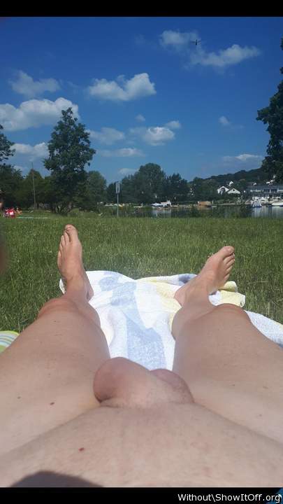 Relaxing by the nude beach