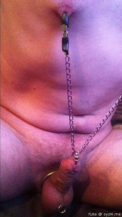 nipple clamps chained to pierced knob