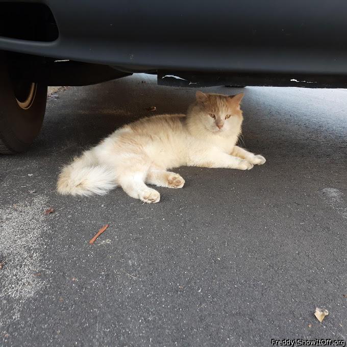 Next door cat. He is a tabby mix with angora