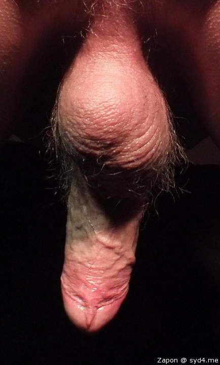 Hard with foreskin covering the head