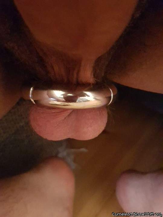 Open hanging smooth white cock balls hole