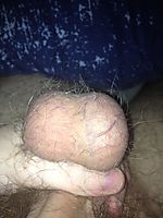 Semi-nude head with a bridle and balls, of my uncircumcised dick