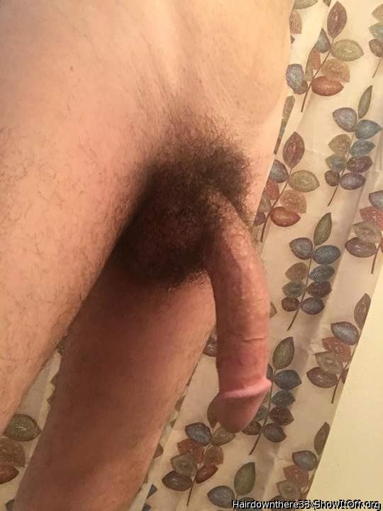 Sitting on my haunches with my hard cock and low hanging balls exposed!
