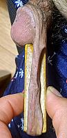 Stretching urethra with X-acto knife handle