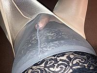 With my stiff cock in my horny jerk off nylon pantyhose