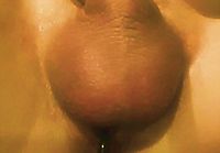 Hands free cum. Notice sperm drops on balls...