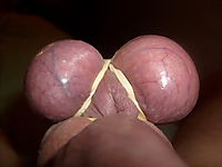 rubber banded, purple, ready to explode hot cum