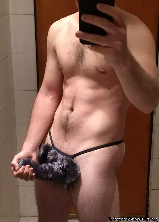 Trying on my new swim trunks