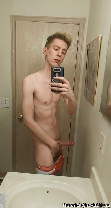 Young twink boyfriend showing off shaved cock