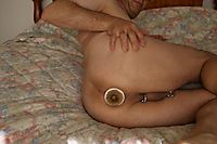 Remote controled buttplug inserted.