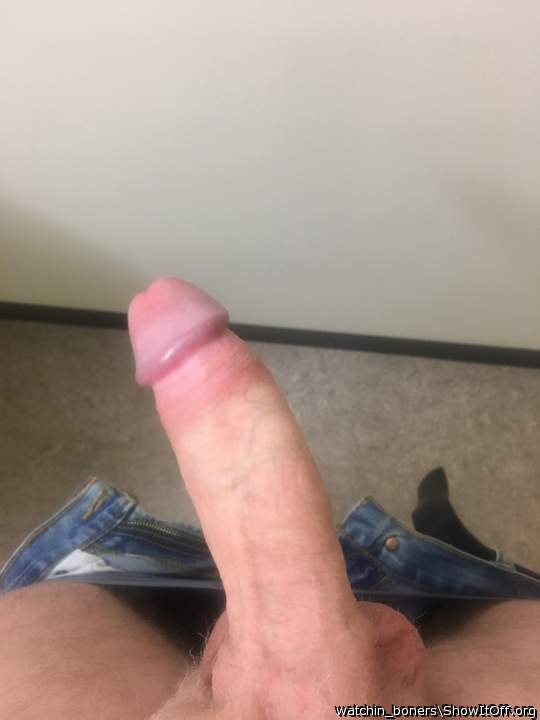 My huge cock peeking out of my jeans.