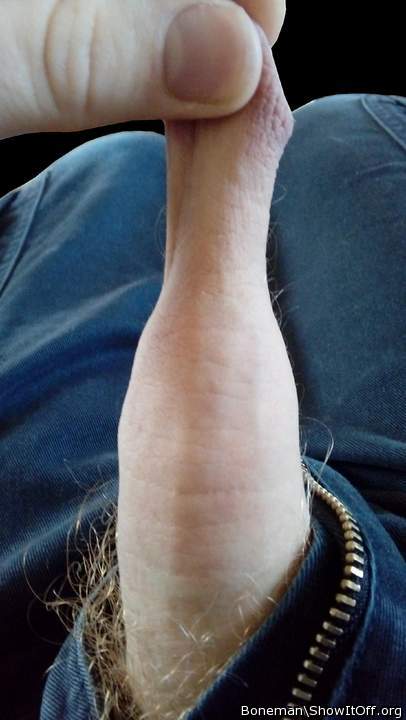 Half erected, foreskin pulled down ✊