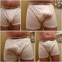 Soft floppy cock and loose cum filled balls.