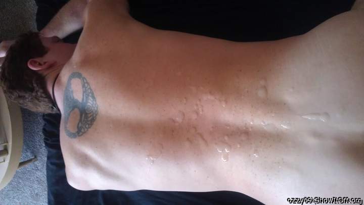 A giant load of BBC cum on my back..