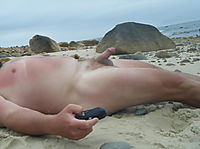 Exposing on the beach