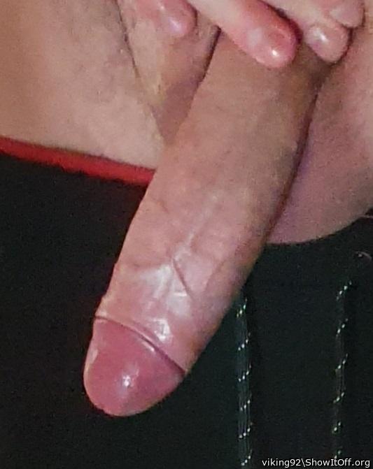 Precum oozing out of my horny cock