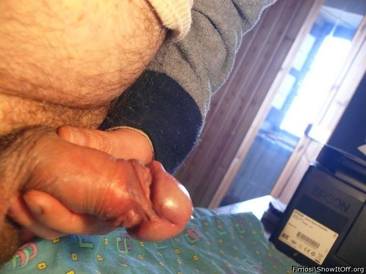 My uncircumcised penis with tender foreskin and damage frenulum close up
